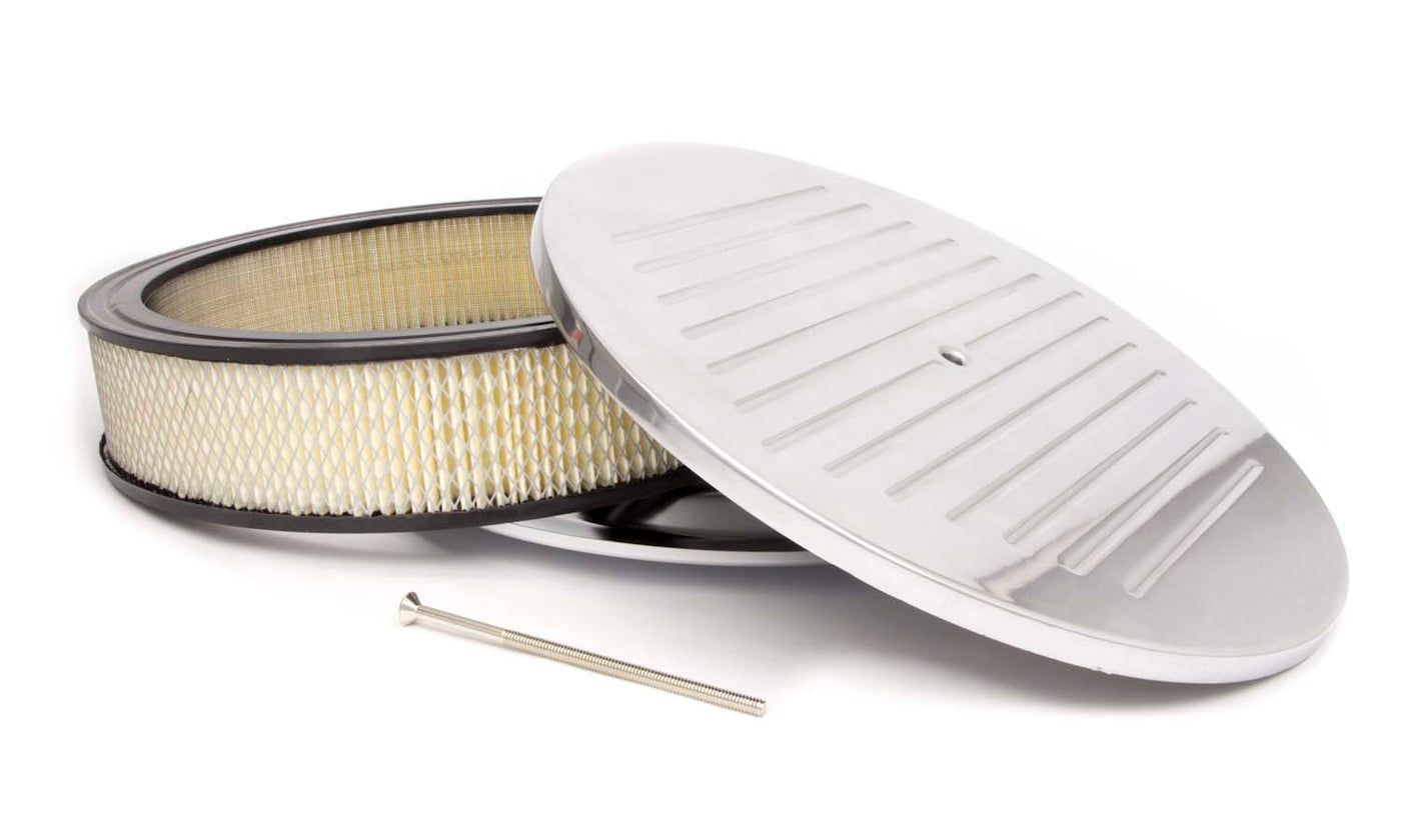 Air Cleaner Assembly - 14 in Round - 3 in Element - 5-1/8 in Carb Flange - Flat Base - Ball Milled - Aluminum - Polished - Kit
