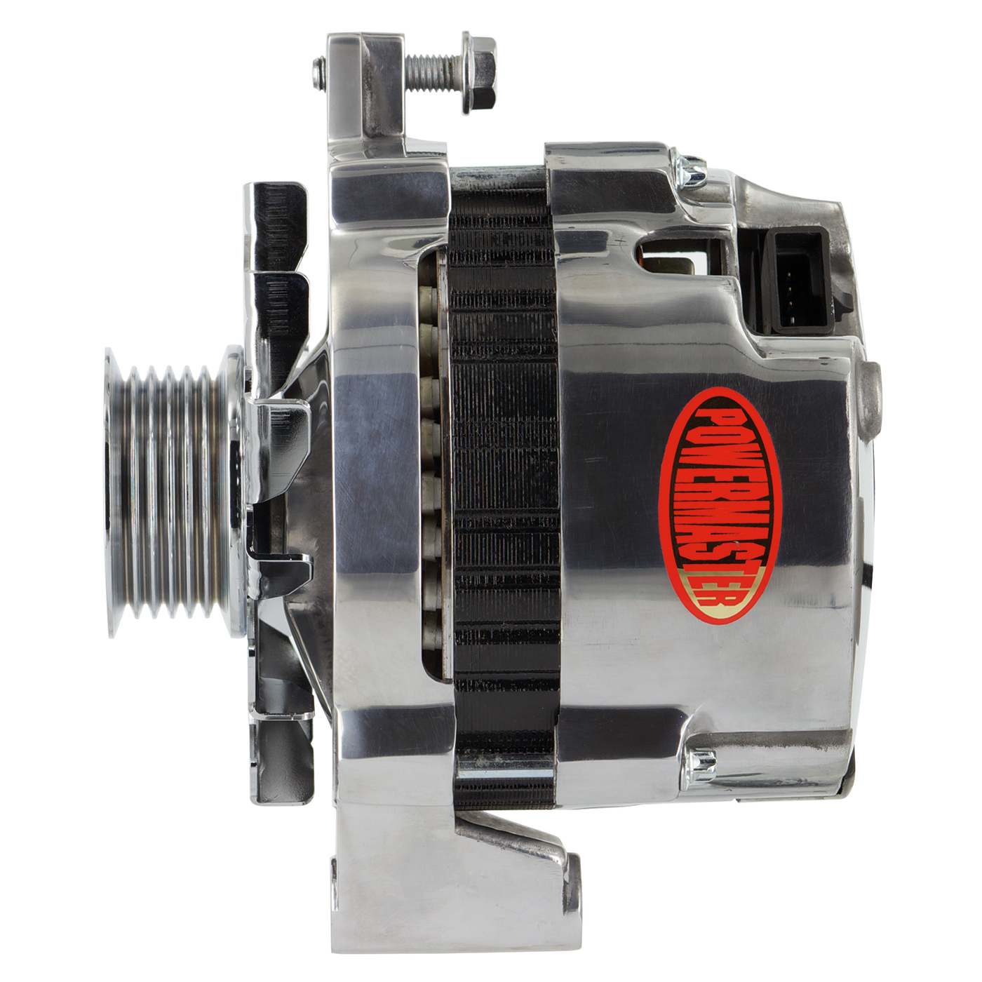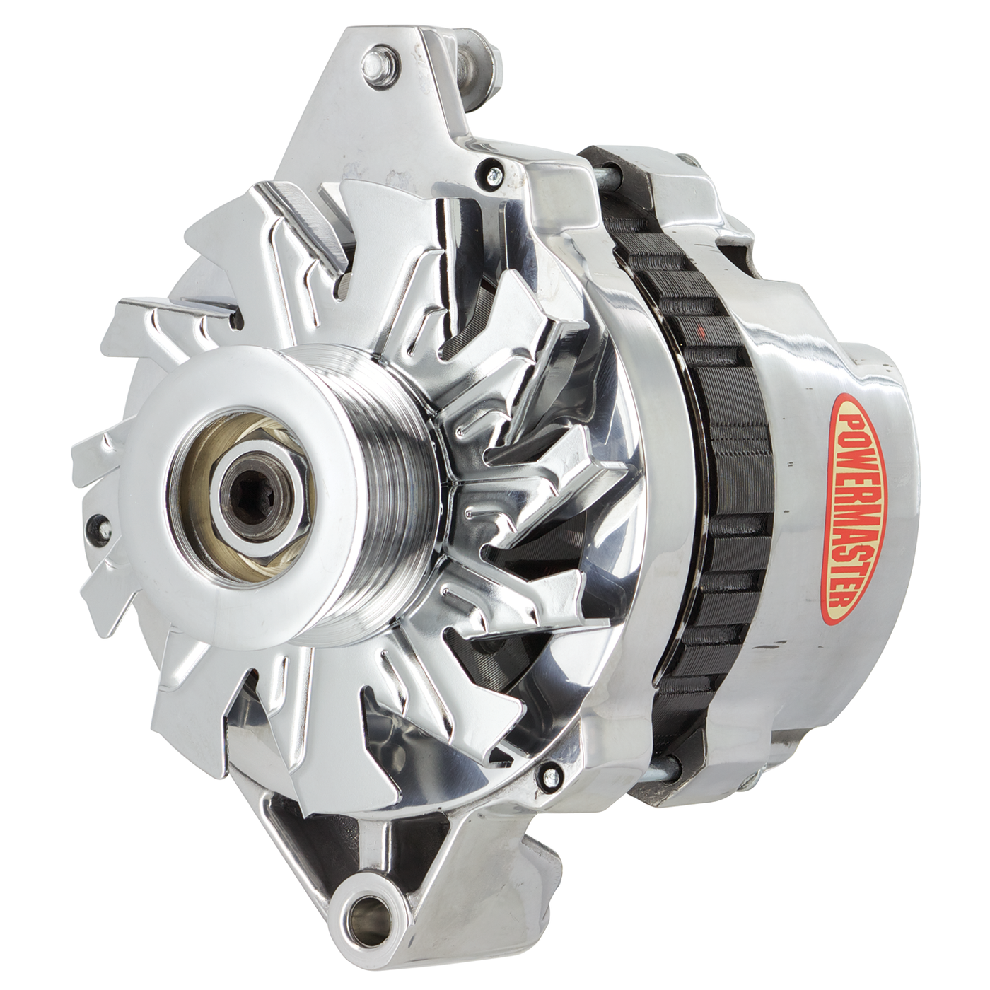 Powermaster designed this Polished 67402 GM CS130 Style 140 Amp Alternator to provide maximum power to the 12 Volt charging system on your hot rod, muscle car, truck, audio competition vehicle or sport compact! This highly efficient small case alternator accepts either a 1 wire or 3 wire connection, and features better cooling, with internal and external fans.