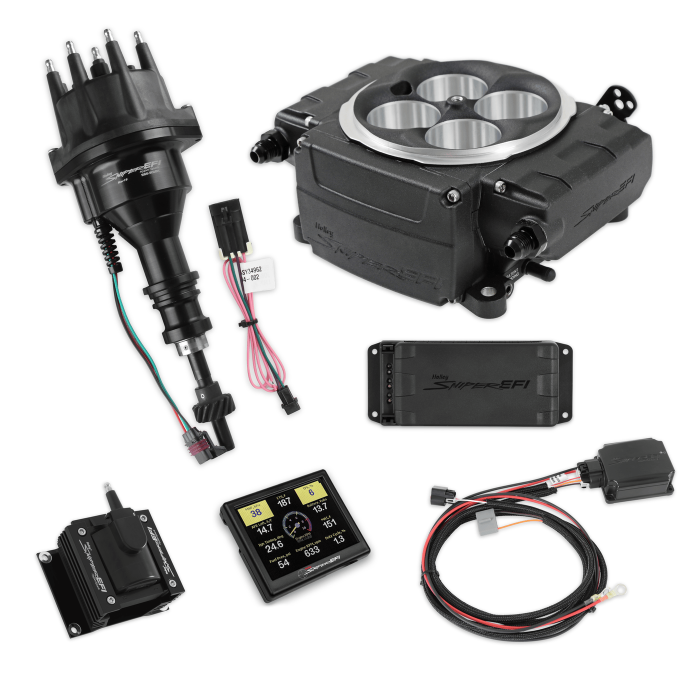 {"id":9066199646433,"title":"Holley 550-511-3PX-SBF Sniper 2 EFI Base Kit HyperSpark Ignition System 650 HP, Black","handle":"hly550-511-3px-sbf","description":"\u003cp class=\"MsoNormal\" style=\"mso-margin-top-alt: auto; mso-margin-bottom-alt: auto; line-height: normal;\"\u003e\u003cspan style=\"font-size: 12.0pt; font-family: 'Times New Roman',serif; mso-fareast-font-family: 'Times New Roman'; color: black;\"\u003eHolley designed this 550-511-3PX-SBF Sniper 2 EFI Base Kit as a self-tuning, easy-to-install, EFI conversion for 8.2 Deck Small Block Ford (5.0 Base) engines. This kit supports up to 650 HP naturally aspirated or 575 HP boosted with (4) 100 lb.\/hr. injectors. It includes a HyperSpark distributor, HyperSpark coil, and a HyperSpark 2 ignition box.\u003c\/span\u003e\u003c\/p\u003e\n\u003cp class=\"MsoNormal\" style=\"mso-margin-top-alt: auto; mso-margin-bottom-alt: auto; line-height: normal;\"\u003e\u003cspan style=\"font-size: 12.0pt; font-family: 'Times New Roman',serif; mso-fareast-font-family: 'Times New Roman'; color: black;\"\u003eCoupled with a 3.5\" color LCD touchscreen handheld and Power Distribution Module (PDM), this Base Kit is one of the most complete Sniper EFI conversion kit ever offered by Holley!\u003c\/span\u003e\u003c\/p\u003e\n\u003cp class=\"MsoNormal\" style=\"mso-margin-top-alt: auto; mso-margin-bottom-alt: auto; line-height: normal;\"\u003e\u003cspan style=\"font-size: 12.0pt; font-family: 'Times New Roman',serif; mso-fareast-font-family: 'Times New Roman'; color: black;\"\u003eThe PDM module was specifically designed to provide ease of installation. Simply slide the stripped wire ends under the positive lock connector and tighten down the set screws. Battery power, ground, and a switched 12-volt source are all that's required from your vehicle to power the PDM and your Sniper 2 System!\u003c\/span\u003e\u003c\/p\u003e\n\u003cp class=\"MsoNormal\" style=\"mso-margin-top-alt: auto; mso-margin-bottom-alt: auto; line-height: normal;\"\u003e\u003cspan style=\"font-size: 12.0pt; font-family: 'Times New Roman',serif; mso-fareast-font-family: 'Times New Roman'; color: black;\"\u003eMake your classic drive like a modern fuel injected vehicle, including easy cold starts, smooth drivability, and improved fuel economy! Designed for installation at home in your garage with limited tools and support of Holley's comprehensive installation manual and videos. The user-friendly setup wizard only requires answering a few simple engine questions to create a base map and begin self-tuning. No laptop or tuning experience required!\u003c\/span\u003e\u003c\/p\u003e\n\u003cp class=\"MsoNormal\" style=\"mso-margin-top-alt: auto; mso-margin-bottom-alt: auto; line-height: normal;\"\u003e\u003cspan style=\"font-size: 12.0pt; font-family: 'Times New Roman',serif; mso-fareast-font-family: 'Times New Roman'; color: black;\"\u003eLooking for a high performance fuel injection system that delivers power, efficiency, as well as ease of use? Look no further than the Sniper 2 EFI HyperSpark Ignition bundle!\u003c\/span\u003e\u003c\/p\u003e\n\u003ch3 class=\"MsoNormal\" style=\"mso-margin-top-alt: auto; mso-margin-bottom-alt: auto; line-height: normal; mso-outline-level: 3;\"\u003e\n\u003cb\u003e\u003cu\u003e\u003cspan style=\"font-size: 12.0pt; font-family: 'Times New Roman',serif; mso-fareast-font-family: 'Times New Roman'; color: black;\"\u003eMain Features:\u003c\/span\u003e\u003c\/u\u003e\u003c\/b\u003e\u003cb\u003e\u003cspan style=\"font-size: 13.5pt; font-family: 'Times New Roman',serif; mso-fareast-font-family: 'Times New Roman';\"\u003e\u003c\/span\u003e\u003c\/b\u003e\n\u003c\/h3\u003e\n\u003cul type=\"disc\"\u003e\n\u003cli class=\"MsoNormal\" style=\"color: black; mso-margin-top-alt: auto; mso-margin-bottom-alt: auto; line-height: normal; mso-list: l0 level1 lfo1; tab-stops: list .5in;\"\u003e\u003cspan style=\"font-size: 12.0pt; font-family: 'Times New Roman',serif; mso-fareast-font-family: 'Times New Roman';\"\u003eBillet aluminum construction unit plugs directly into the main harness and features a Hall Effect crank trigger for a noise-free RPM signal to the ECU\u003c\/span\u003e\u003c\/li\u003e\n\u003cli class=\"MsoNormal\" style=\"color: black; mso-margin-top-alt: auto; mso-margin-bottom-alt: auto; line-height: normal; mso-list: l0 level1 lfo1; tab-stops: list .5in;\"\u003e\u003cspan style=\"font-size: 12.0pt; font-family: 'Times New Roman',serif; mso-fareast-font-family: 'Times New Roman';\"\u003eIntegrated ignition coil bracket simplifies mounting the coil while delivering up to 150 mJ of spark energy per second from idle to redline\u003c\/span\u003e\u003c\/li\u003e\n\u003cli class=\"MsoNormal\" style=\"color: black; mso-margin-top-alt: auto; mso-margin-bottom-alt: auto; line-height: normal; mso-list: l0 level1 lfo1; tab-stops: list .5in;\"\u003e\u003cspan style=\"font-size: 12.0pt; font-family: 'Times New Roman',serif; mso-fareast-font-family: 'Times New Roman';\"\u003ePatented clear installation cap eliminates confusion while installing the distributor with a marking indicator\u003c\/span\u003e\u003c\/li\u003e\n\u003cli class=\"MsoNormal\" style=\"color: black; mso-margin-top-alt: auto; mso-margin-bottom-alt: auto; line-height: normal; mso-list: l0 level1 lfo1; tab-stops: list .5in;\"\u003e\u003cspan style=\"font-size: 12.0pt; font-family: 'Times New Roman',serif; mso-fareast-font-family: 'Times New Roman';\"\u003eNext generation ECU features improved RF noise and interference resistance (old car wiring, noisy alternators, faulty plug wires)\u003c\/span\u003e\u003c\/li\u003e\n\u003cli class=\"MsoNormal\" style=\"color: black; mso-margin-top-alt: auto; mso-margin-bottom-alt: auto; line-height: normal; mso-list: l0 level1 lfo1; tab-stops: list .5in;\"\u003e\u003cspan style=\"font-size: 12.0pt; font-family: 'Times New Roman',serif; mso-fareast-font-family: 'Times New Roman';\"\u003eSniper 2 Bluetooth module turns your iOS or Android smartphone into a tuning and monitoring