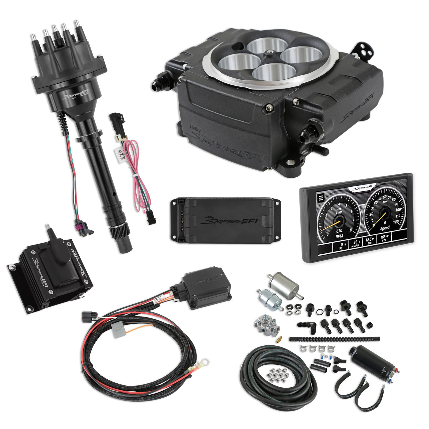 {"id":9066199384289,"title":"Holley 550-511-5PK-SBC Sniper 2 EFI Master Kit HyperSpark Ignition System 650 HP, Black","handle":"hly550-511-5pk-sbc","description":"\u003cp class=\"MsoNormal\" style=\"mso-margin-top-alt: auto; mso-margin-bottom-alt: auto; line-height: normal;\"\u003e\u003cspan style=\"font-size: 12.0pt; font-family: 'Times New Roman',serif; mso-fareast-font-family: 'Times New Roman'; color: black;\"\u003eHolley designed this 550-511-5PK-SBC Sniper 2 EFI Master Kit as a self-tuning, easy-to-install, EFI conversion for Small and Big Block Chevy engines. This kit supports up to 650 HP naturally aspirated or 575 HP boosted with (4) 100 lb.\/hr. injectors. It includes a HyperSpark distributor, HyperSpark coil, and a HyperSpark 2 ignition box.\u003c\/span\u003e\u003c\/p\u003e\n\u003cp class=\"MsoNormal\" style=\"mso-margin-top-alt: auto; mso-margin-bottom-alt: auto; line-height: normal;\"\u003e\u003cspan style=\"font-size: 12.0pt; font-family: 'Times New Roman',serif; mso-fareast-font-family: 'Times New Roman'; color: black;\"\u003eCoupled with a 5\" color LCD touchscreen handheld, Power Distribution Module (PDM) and Fuel System, this Master Kit is the most complete Sniper EFI conversion kit ever offered by Holley!\u003c\/span\u003e\u003c\/p\u003e\n\u003cp class=\"MsoNormal\" style=\"mso-margin-top-alt: auto; mso-margin-bottom-alt: auto; line-height: normal;\"\u003e\u003cspan style=\"font-size: 12.0pt; font-family: 'Times New Roman',serif; mso-fareast-font-family: 'Times New Roman'; color: black;\"\u003eThe PDM module was specifically designed to provide ease of installation. Simply slide the stripped wire ends under the positive lock connector and tighten down the set screws. Battery power, ground, and a switched 12-volt source are all that's required from your vehicle to power the PDM and your Sniper 2 System!\u003c\/span\u003e\u003c\/p\u003e\n\u003cp class=\"MsoNormal\" style=\"mso-margin-top-alt: auto; mso-margin-bottom-alt: auto; line-height: normal;\"\u003e\u003cspan style=\"font-size: 12.0pt; font-family: 'Times New Roman',serif; mso-fareast-font-family: 'Times New Roman'; color: black;\"\u003eMake your classic drive like a modern fuel injected vehicle, including easy cold starts, smooth drivability, and improved fuel economy! Designed for installation at home in your garage with limited tools and support of Holley's comprehensive installation manual and videos. The user-friendly setup wizard only requires answering a few simple engine questions to create a base map and begin self-tuning. No laptop or tuning experience required!\u003c\/span\u003e\u003c\/p\u003e\n\u003cp class=\"MsoNormal\" style=\"mso-margin-top-alt: auto; mso-margin-bottom-alt: auto; line-height: normal;\"\u003e\u003cspan style=\"font-size: 12.0pt; font-family: 'Times New Roman',serif; mso-fareast-font-family: 'Times New Roman'; color: black;\"\u003eLooking for a high performance fuel injection system that delivers power, efficiency, as well as ease of use? Look no further than the Sniper 2 EFI HyperSpark Ignition bundle!\u003c\/span\u003e\u003c\/p\u003e\n\u003ch3 class=\"MsoNormal\" style=\"mso-margin-top-alt: auto; mso-margin-bottom-alt: auto; line-height: normal; mso-outline-level: 3;\"\u003e\n\u003cb\u003e\u003cu\u003e\u003cspan style=\"font-size: 12.0pt; font-family: 'Times New Roman',serif; mso-fareast-font-family: 'Times New Roman'; color: black;\"\u003eMain Features:\u003c\/span\u003e\u003c\/u\u003e\u003c\/b\u003e\u003cb\u003e\u003cspan style=\"font-size: 13.5pt; font-family: 'Times New Roman',serif; mso-fareast-font-family: 'Times New Roman';\"\u003e\u003c\/span\u003e\u003c\/b\u003e\n\u003c\/h3\u003e\n\u003cul type=\"disc\"\u003e\n\u003cli class=\"MsoNormal\" style=\"color: black; mso-margin-top-alt: auto; mso-margin-bottom-alt: auto; line-height: normal; mso-list: l0 level1 lfo1; tab-stops: list .5in;\"\u003e\u003cspan style=\"font-size: 12.0pt; font-family: 'Times New Roman',serif; mso-fareast-font-family: 'Times New Roman';\"\u003eBillet aluminum construction unit plugs directly into the main harness and features a Hall Effect crank trigger for a noise-free RPM signal to the ECU\u003c\/span\u003e\u003c\/li\u003e\n\u003cli class=\"MsoNormal\" style=\"color: black; mso-margin-top-alt: auto; mso-margin-bottom-alt: auto; line-height: normal; mso-list: l0 level1 lfo1; tab-stops: list .5in;\"\u003e\u003cspan style=\"font-size: 12.0pt; font-family: 'Times New Roman',serif; mso-fareast-font-family: 'Times New Roman';\"\u003eIntegrated ignition coil bracket simplifies mounting the coil while delivering up to 150 mJ of spark energy per second from idle to redline\u003c\/span\u003e\u003c\/li\u003e\n\u003cli class=\"MsoNormal\" style=\"color: black; mso-margin-top-alt: auto; mso-margin-bottom-alt: auto; line-height: normal; mso-list: l0 level1 lfo1; tab-stops: list .5in;\"\u003e\u003cspan style=\"font-size: 12.0pt; font-family: 'Times New Roman',serif; mso-fareast-font-family: 'Times New Roman';\"\u003ePatented clear installation cap eliminates confusion while installing the distributor with a marking indicator\u003c\/span\u003e\u003c\/li\u003e\n\u003cli class=\"MsoNormal\" style=\"color: black; mso-margin-top-alt: auto; mso-margin-bottom-alt: auto; line-height: normal; mso-list: l0 level1 lfo1; tab-stops: list .5in;\"\u003e\u003cspan style=\"font-size: 12.0pt; font-family: 'Times New Roman',serif; mso-fareast-font-family: 'Times New Roman';\"\u003eNext generation ECU features improved RF noise and interference resistance (old car wiring, noisy alternators, faulty plug wires)\u003c\/span\u003e\u003c\/li\u003e\n\u003cli class=\"MsoNormal\" style=\"color: black; mso-margin-top-alt: auto; mso-margin-bottom-alt: auto; line-height: normal; mso-list: l0 level1 lfo1; tab-stops: list .5in;\"\u003e\u003cspan style=\"font-size: 12.0pt; font-family: 'Times New Roman',serif; mso-fareast-font-family: 'Times New Roman';\"\u003eSniper 2 Bluetooth module turns your iOS or Android smartphone into a tuning and monitoring 
