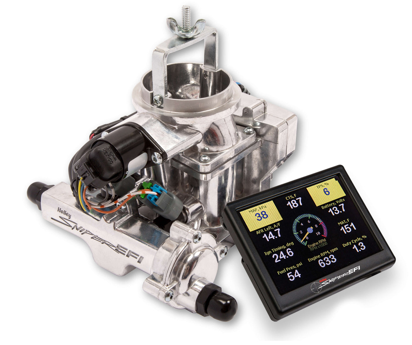 {"id":4849766170702,"title":"Holley 550-858 Sniper EFI BBD Jeep CJ Kit Shiny Finish","handle":"hly550-858","description":"\u003cdiv id=\"overview\" class=\"product_info ui-tabs-panel ui-corner-bottom ui-widget-content\" aria-labelledby=\"ui-id-18\" role=\"tabpanel\" aria-hidden=\"false\"\u003e\n\u003cdiv class=\"full_description\"\u003eAre you tired of struggling with the old BBD carburetor on your Jeep?’?????????ƒ????????????? Does your off road rig leave you hanging at extreme angles while on the trail? The EFI team at Holley?’?????????ƒ???????????? has designed the perfect solution for your problems. Introducing the Sniper EFI BBD, for Jeep CJ's! The Sniper EFI BBD will be right at home on any 258ci powered trail rig, or weekend cruiser. Not only does the Sniper EFI BBD offer superior throttle response and WOT power over the carburetor, but you can also gain timing control! Put an end to cold start issues, hesitations, vapor lock, and flooding. Upgrade to Sniper EFI and get the tactical accuracy of EFI today!\u003c\/div\u003e\n\u003c\/div\u003e\n\u003cdiv class=\"product_info ui-tabs-panel ui-corner-bottom ui-widget-content\" aria-labelledby=\"ui-id-18\" role=\"tabpanel\" aria-hidden=\"false\"\u003e\n\u003ch3\u003e\u003c\/h3\u003e\n\u003ch3\u003eFeatures:\u003c\/h3\u003e\n\u003cul class=\"productpage_list\"\u003e\n\u003cli\u003eBolt on BBD Carburetor Replacement\u003c\/li\u003e\n\u003cli\u003eEngineered specifically for 1971-1986 Jeep CJ?’??????????’????????’???????ƒ?????????????’???????ƒ?????????’???????s with 258ci 6 Cylinder Engines\u003c\/li\u003e\n\u003cli\u003eThrottle body mounted ECU ?’??????????’????????’???????ƒ?????????????’???????ƒ??????????ƒ??????????? no extra boxes to mount\u003c\/li\u003e\n\u003cli\u003eSupports up to 350HP with Two 100lb\/hr Injectors\u003c\/li\u003e\n\u003cli\u003eOnly 4 Wiring Connections Required! (Battery +, Battery - , Switched Ignition \u0026amp; RPM)\u003c\/li\u003e\n\u003cli\u003eInternal fuel pressure regulator eliminates the hassle of plumbing an external fuel pressure regulator (Preset to 58.5 PSI)\u003c\/li\u003e\n\u003cli\u003eIntegrated ignition timing control\u003c\/li\u003e\n\u003cli\u003eHigh Resolution Full Color Touchscreen for Initial Setup, Tuning, and Gauge Displays\u003c\/li\u003e\n\u003cli\u003eSimple Calibration Wizard (answer a few questions about your engine and it creates the base map, then starts tuning on its own!) - NO laptop required!\u003c\/li\u003e\n\u003cli\u003eSelf-tuning ECU means you don?’??????????’????????’???????ƒ?????????????’???????ƒ?????????’???????t have to be a computer\/tuning wiz to have EFI!\u003c\/li\u003e\n\u003cli\u003eThe included Genuine Bosch LSU 4.9 Wideband Oxygen Sensor provides realtime Fuel Map Learn!\u003c\/li\u003e\n\u003cli\u003eOEM Style TPS\/IAC and Fuel Pressure regulator, for years of dependable service.\u003c\/li\u003e\n\u003cli\u003eIncluded clamp-on oxygen sensor kit for 2.25\" exhaust ensures a leak free oxygen sensor installation, with Stainless Steel T-Bolt clamps and a Stainless Steel (Weldable) oxygen sensor flange\u003c\/li\u003e\n\u003c\/ul\u003e\n\u003ctable class=\"attributes-table\" cellspacing=\"0\"\u003e\n\u003ctbody\u003e\n\u003ctr\u003e\n\u003cth class=\"label\"\u003eBrand\u003c\/th\u003e\n\u003ctd class=\"data\" itemprop=\"brand\"\u003eHolley Sniper EFI\u003c\/td\u003e\n\u003c\/tr\u003e\n\u003ctr\u003e\n\u003cth class=\"label\"\u003eEmission Code\u003c\/th\u003e\n\u003ctd class=\"data\"\u003e3\u003c\/td\u003e\n\u003c\/tr\u003e\n\u003ctr\u003e\n\u003cth class=\"label\"\u003eFinish\u003c\/th\u003e\n\u003ctd class=\"data\"\u003eShiny\u003c\/td\u003e\n\u003c\/tr\u003e\n\u003ctr\u003e\n\u003cth class=\"label\"\u003eFuel Pressure\u003c\/th\u003e\n\u003ctd class=\"data\"\u003e58.5 PSI\u003c\/td\u003e\n\u003c\/tr\u003e\n\u003ctr\u003e\n\u003cth class=\"label\"\u003eInjector Size\u003c\/th\u003e\n\u003ctd class=\"data\"\u003e100 lb\/hr @ 58.5 PSI\u003c\/td\u003e\n\u003c\/tr\u003e\n\u003ctr\u003e\n\u003cth class=\"label\"\u003eInlet \/ Outlet Size\u003c\/th\u003e\n\u003ctd class=\"data\"\u003e9\/16-18 Female O-Ring (AN 6)\u003c\/td\u003e\n\u003c\/tr\u003e\n\u003ctr\u003e\n\u003cth class=\"label\"\u003eProduct Type\u003c\/th\u003e\n\u003ctd class=\"data\"\u003eSniper EFI BBD\u003c\/td\u003e\n\u003c\/tr\u003e\n\u003ctr\u003e\n\u003cth class=\"label\"\u003ePart Number\u003c\/th\u003e\n\u003ctd class=\"data\"\u003e550-858\u003c\/td\u003e\n\u003c\/tr\u003e\n\u003c\/tbody\u003e\n\u003c\/table\u003e\n\u003c\/div\u003e","published_at":"2024-12-20T13:13:04-06:00","created_at":"2020-10-08T14:36:02-05:00","vendor":"HOLLEY","type":"Fuel Injection Systems","tags":["Calibration Module Included: Yes","Distributor Included: No","ECM Included: Yes","EGR: No","Fuel Pressure Regulator Included: Yes","Fuel Pump Included: No","IAC Motor Included: Yes","IAT Sensor Included: Yes","Injection Style: Throttle body","Injector Size (lbs\/hr): 100 lbs.\/hr.","Injectors Included: Yes","Intake Manifold Included: No","MAP Sensor Included: Yes","Maximum Horsepower with Gas: 350","Metering Style: Speed density","Multi-Port Fuel Rails Included: No","Oxygen Sensor Included: Yes","Power Adder Compatible: No","Quantity: Sold as a kit.","Self Tuning: Yes","Throttle Body Finish: Natural","Throttle Body Included: Yes","Throttle Body Material: Aluminum","Throttle Body Mounting Flange: Carter BBD","Timing Control Compatible: Yes","TPS Sensor Included: Yes","Transmission Controller Included: No","User Tunable: Yes","Venturi Quantity: 2","Wiring Harness Included: Yes"],"price":121395,"price_min":121395,"price_max":121395,"available":true,"price_varies":false,"compare_at_price":null,"compare_at_price_min":0,"compare_at_price_max":0,"compare_at_price_varies":false,"variants":[{"id":32666263715918,"title":"Default Title","option1":"Default Title","option2":null,"option3":null,"sku":"HLY550-858","requires_shipping":true,"taxable":true,"featured_image":null,"available":true,"name":"Hol