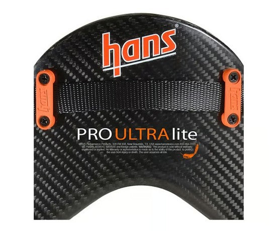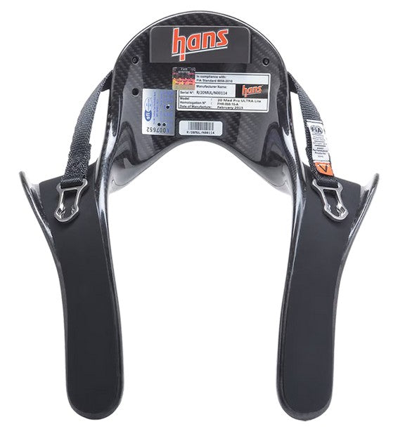 HANS designed this DK1423631FIASFI Pro Ultra Lite Head and Neck Restraint System to tether the driver's helmet to their shoulders, helping to reduce severe head as well as neck injuries.