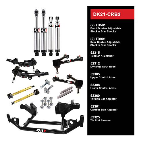 {"id":7661513769185,"title":"QA1 DK21-CRB2 Drag Kit Level 1 Mopar B-Body 1966-67","handle":"qa1dk21-crb2","description":"\u003cp class=\"MsoNormal\" style=\"mso-margin-top-alt: auto; mso-margin-bottom-alt: auto; line-height: normal;\"\u003e\u003cspan style=\"font-size: 12.0pt; font-family: 'Times New Roman',serif; mso-fareast-font-family: 'Times New Roman'; color: black;\"\u003eQA1 designed their DK21-CRB2 Drag Racing Level 1 Suspension Kit to fit the 1966-1967 \u003c\/span\u003e\u003cspan style=\"font-size: 12.0pt; font-family: 'Times New Roman',serif;\"\u003eMopar B-Body\u003c\/span\u003e\u003cspan style=\"font-size: 12.0pt; font-family: 'Times New Roman',serif; mso-fareast-font-family: 'Times New Roman'; color: black;\"\u003e. This Level 1 drag racing kit offers front and rear double adjustable shocks for proper weight transfer at the track!\u003c\/span\u003e\u003cspan style=\"font-size: 13.5pt; font-family: 'Segoe UI',sans-serif; mso-fareast-font-family: 'Times New Roman'; color: black;\"\u003e\u003c\/span\u003e\u003c\/p\u003e\n\u003cp class=\"MsoNormal\" style=\"mso-margin-top-alt: auto; mso-margin-bottom-alt: auto; line-height: normal;\"\u003e\u003cb\u003e\u003cu\u003e\u003cspan style=\"font-size: 12.0pt; font-family: 'Times New Roman',serif; mso-fareast-font-family: 'Times New Roman'; color: black;\"\u003eQA1 DK21-CRB2 Drag Racing Level 1 1966-1967 Mopar B-Body Suspension Kit Includes:\u003c\/span\u003e\u003c\/u\u003e\u003c\/b\u003e\u003cspan style=\"font-size: 13.5pt; font-family: 'Segoe UI',sans-serif; mso-fareast-font-family: 'Times New Roman'; color: black;\"\u003e\u003c\/span\u003e\u003c\/p\u003e\n\u003cul type=\"disc\"\u003e\n\u003cli class=\"MsoNormal\" style=\"color: black; mso-margin-top-alt: auto; mso-margin-bottom-alt: auto; line-height: normal; mso-list: l0 level1 lfo1; tab-stops: list .5in;\"\u003e\u003cspan style=\"font-size: 12.0pt; font-family: 'Times New Roman',serif; mso-fareast-font-family: 'Times New Roman';\"\u003e(2) TD501 Front Double Adjustable Stocker Star Shocks\u003c\/span\u003e\u003c\/li\u003e\n\u003cli class=\"MsoNormal\" style=\"color: black; mso-margin-top-alt: auto; mso-margin-bottom-alt: auto; line-height: normal; mso-list: l0 level1 lfo1; tab-stops: list .5in;\"\u003e\u003cspan style=\"font-size: 12.0pt; font-family: 'Times New Roman',serif; mso-fareast-font-family: 'Times New Roman';\"\u003e(2) TD901 Rear Double Adjustable Stocker Star Shocks\u003c\/span\u003e\u003c\/li\u003e\n\u003cli class=\"MsoNormal\" style=\"color: black; mso-margin-top-alt: auto; mso-margin-bottom-alt: auto; line-height: normal; mso-list: l0 level1 lfo1; tab-stops: list .5in;\"\u003e\u003cspan style=\"font-size: 12.0pt; font-family: 'Times New Roman',serif; mso-fareast-font-family: 'Times New Roman';\"\u003e52315 Tubular K-Member\u003c\/span\u003e\u003c\/li\u003e\n\u003cli class=\"MsoNormal\" style=\"color: black; mso-margin-top-alt: auto; mso-margin-bottom-alt: auto; line-height: normal; mso-list: l0 level1 lfo1; tab-stops: list .5in;\"\u003e\u003cspan style=\"font-size: 12.0pt; font-family: 'Times New Roman',serif; mso-fareast-font-family: 'Times New Roman';\"\u003e52312 Dynamic Strut Rods\u003c\/span\u003e\u003c\/li\u003e\n\u003cli class=\"MsoNormal\" style=\"color: black; mso-margin-top-alt: auto; mso-margin-bottom-alt: auto; line-height: normal; mso-list: l0 level1 lfo1; tab-stops: list .5in;\"\u003e\u003cspan style=\"font-size: 12.0pt; font-family: 'Times New Roman',serif; mso-fareast-font-family: 'Times New Roman';\"\u003e52305 Upper Control Arms\u003c\/span\u003e\u003c\/li\u003e\n\u003cli class=\"MsoNormal\" style=\"color: black; mso-margin-top-alt: auto; mso-margin-bottom-alt: auto; line-height: normal; mso-list: l0 level1 lfo1; tab-stops: list .5in;\"\u003e\u003cspan style=\"font-size: 12.0pt; font-family: 'Times New Roman',serif; mso-fareast-font-family: 'Times New Roman';\"\u003e52308 Lower Control Arms\u003c\/span\u003e\u003c\/li\u003e\n\u003cli class=\"MsoNormal\" style=\"color: black; mso-margin-top-alt: auto; mso-margin-bottom-alt: auto; line-height: normal; mso-list: l0 level1 lfo1; tab-stops: list .5in;\"\u003e\u003cspan style=\"font-size: 12.0pt; font-family: 'Times New Roman',serif; mso-fareast-font-family: 'Times New Roman';\"\u003e52360 Torsion Bar Adjuster\u003c\/span\u003e\u003c\/li\u003e\n\u003cli class=\"MsoNormal\" style=\"color: black; mso-margin-top-alt: auto; mso-margin-bottom-alt: auto; line-height: normal; mso-list: l0 level1 lfo1; tab-stops: list .5in;\"\u003e\u003cspan style=\"font-size: 12.0pt; font-family: 'Times New Roman',serif; mso-fareast-font-family: 'Times New Roman';\"\u003e52361 Camber Bolt Adjuster\u003c\/span\u003e\u003c\/li\u003e\n\u003cli class=\"MsoNormal\" style=\"color: black; mso-margin-top-alt: auto; mso-margin-bottom-alt: auto; line-height: normal; mso-list: l0 level1 lfo1; tab-stops: list .5in;\"\u003e\u003cspan style=\"font-size: 12.0pt; font-family: 'Times New Roman',serif; mso-fareast-font-family: 'Times New Roman';\"\u003e52325 Tie Rod Sleeves\u003c\/span\u003e\u003c\/li\u003e\n\u003c\/ul\u003e\n\u003cp class=\"MsoNormal\" style=\"mso-margin-top-alt: auto; mso-margin-bottom-alt: auto; line-height: normal;\"\u003e\u003cspan style=\"font-size: 12.0pt; font-family: 'Times New Roman',serif; mso-fareast-font-family: 'Times New Roman'; color: black;\"\u003eLooking for a better launch, straight-line stability, as well as consistent performance? Turn to QA1's drag racing suspension kits for a full-vehicle upgrade that fits your needs. Available in different levels of performance, these drag racing kits offer easy, bolt-in installation. They work seamlessly with every OE component each piece attaches to.\u003c\/span\u003e\u003c\/p\u003e","published_at":"2023-07-19T10:38:17-05:00","created_at":"2022-05-03T10:33:32-05:00","vendor":"QA1","type":"Suspension Handling Packages","tags":["1966-1967 B-Body","Control Arm","Double Adjustable","Drag Racing","Level 1","Mopar","QA1","Shock","Stocker Star","Strut Rod"],"price":385795,"pric
