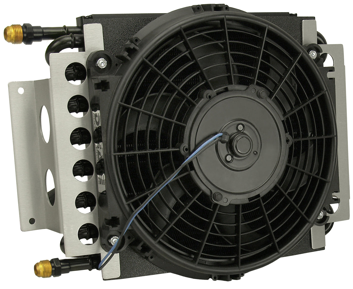 Fluid Cooler and Fan - 15-3/4 x 11-1/2 x 5 in - Tube Type - 8 AN Male Inlet / Outlet - Fittings - Aluminum - Black Powder Coat - Auto Trans - Kit