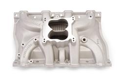 Like all Edelbrock Performers, these manifold increases torque and horsepower from idle to 5500 rpm. The broad power band is ideal for high performance street and engine swap applications. Specs on this non-EGR manifold include a carb pad height that's 3" taller than stock. Dropped divider wall evens air/fuel ratio throughout the rpm range.