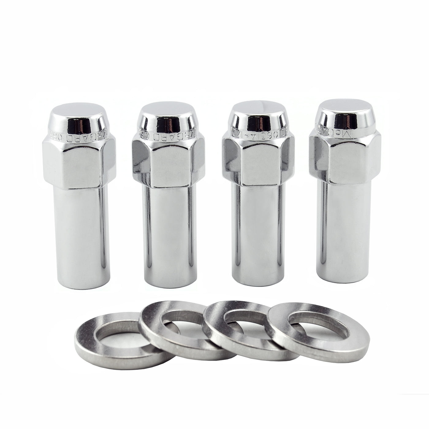 Chrome Extra Long 1.365 Shank Style Lug Nut Set (7/16-20 Thread Size) – Set of 4 Lug Nuts and 4 Washers