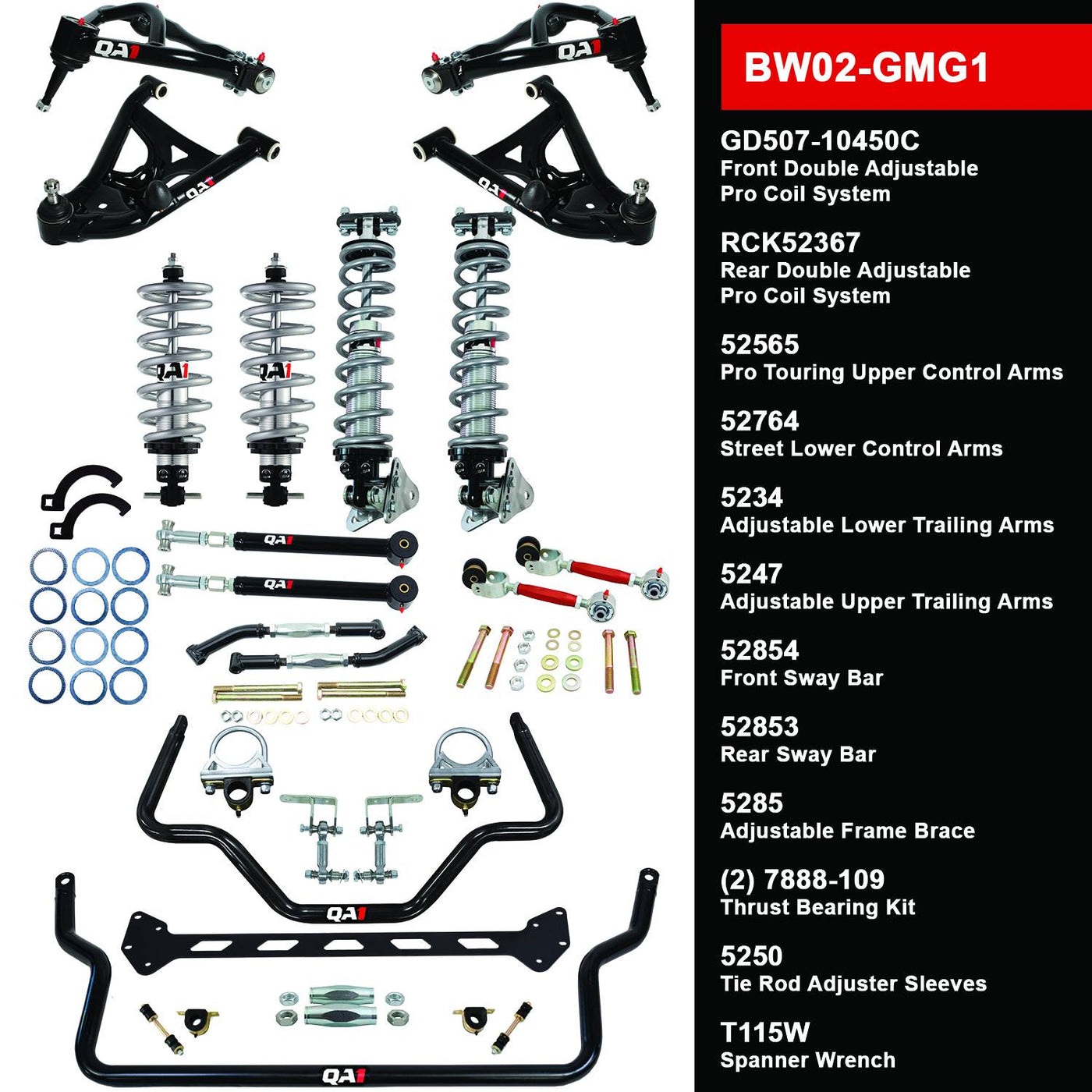 QA1 BW02-GMG1 Big Wheel Level 2 1978-88 G-Body Suspension Kit Includes: